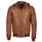• Real Leather Detachable Hooded Quilted Bomber Jacket