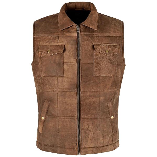 Leather Hunter Vest Distressed Green